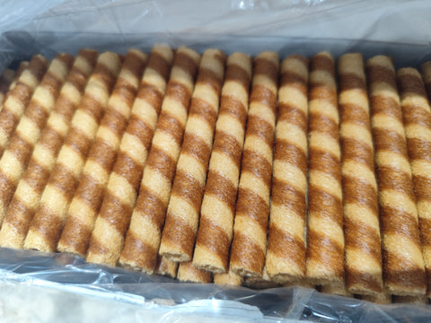 رقائق بسكويت ملفوف مخطط بالكاكاو